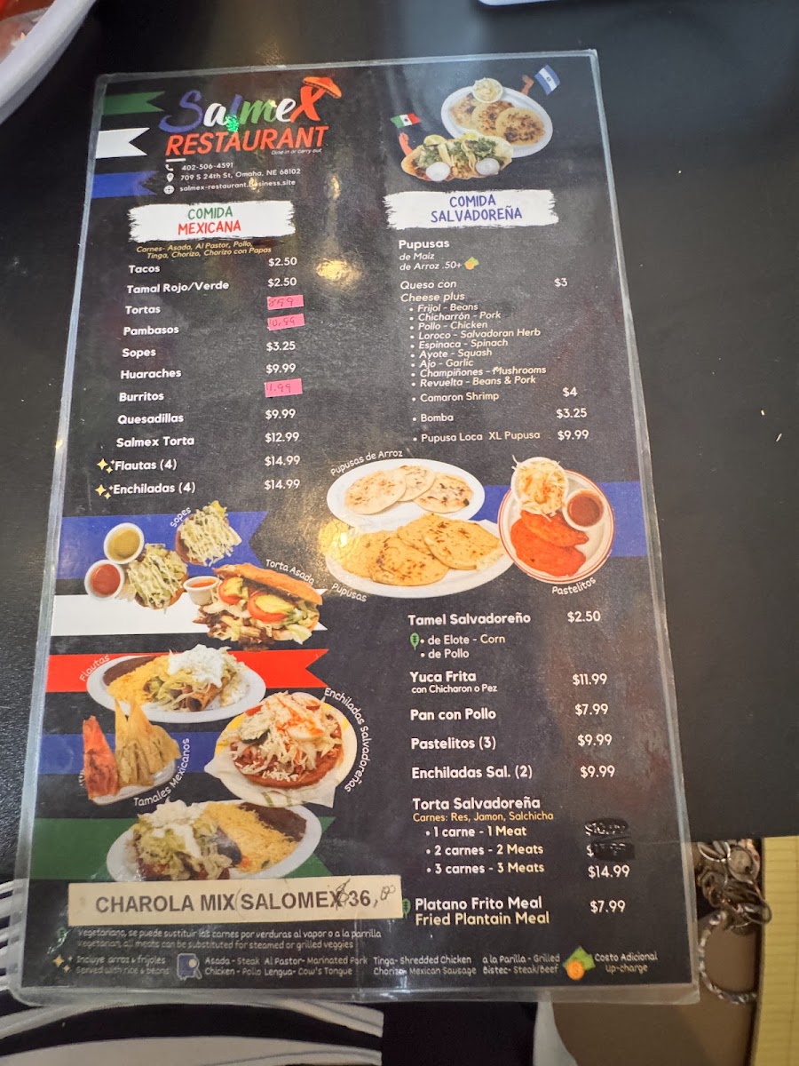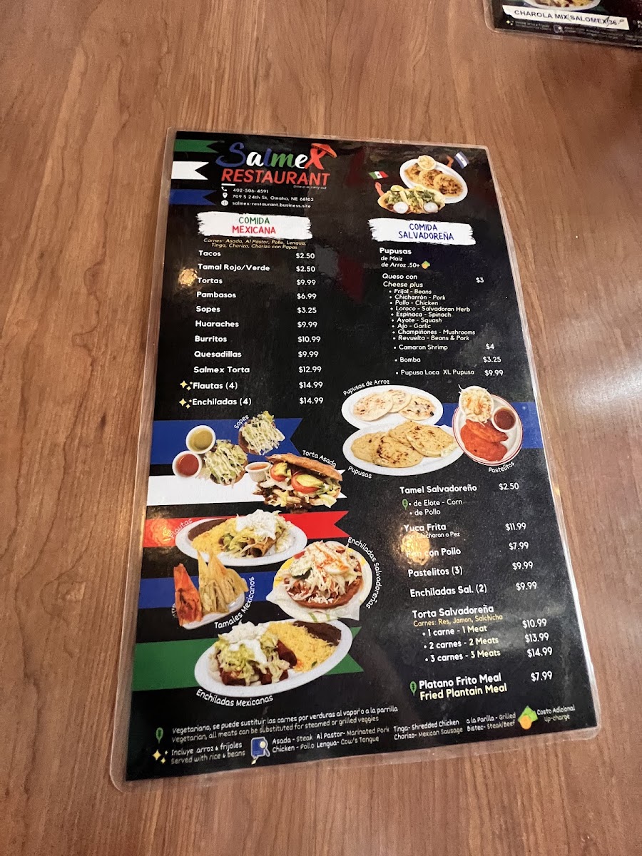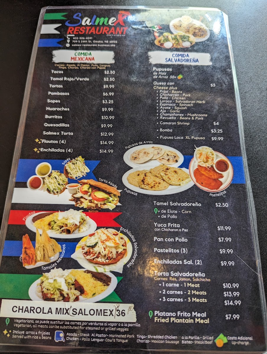 Served with rice, beans, salad, tortillas.